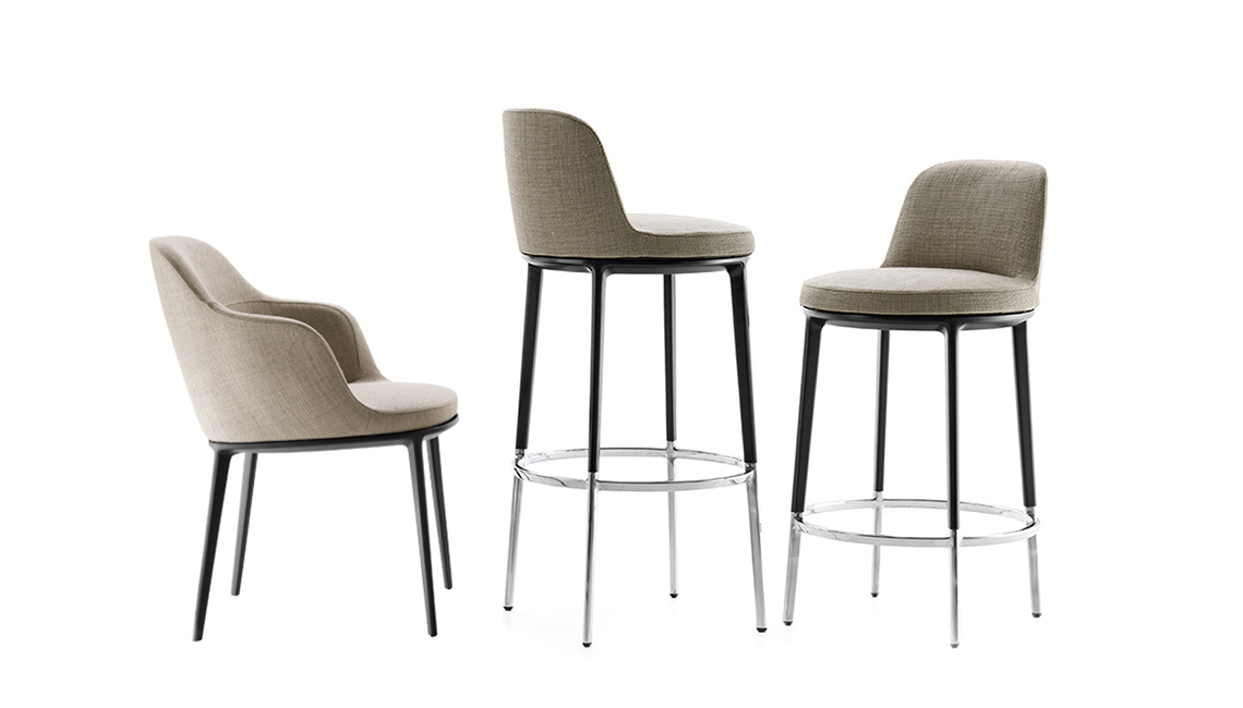Caratos系列不斷成長并發(fā)展 —— 為多樣化的家居環(huán)境提供豐富的創(chuàng)意。 每件產(chǎn)品都擁有高識別度的壓鑄鋁基座。 除了2017年推出的椅子和扶手椅外,Caratos系列還有帶扶手的小扶手椅,扶手椅,浴盆扶手椅,兩個帶旋轉(zhuǎn)座椅的凳子,一張長凳,一個擱腳凳和一張咖啡桌。 石墨和琥珀金屬結(jié)構(gòu)配有藍(lán)色,紫紅色和奶白色裝飾,與針織表面相得益彰。 值得注意的是,產(chǎn)品采用了一種如同“泰迪熊”般柔軟的絨毛 。 憑借這一新系列,Caratos可以說是一組靈活多變的產(chǎn)品,將在未來帶來新的驚喜。