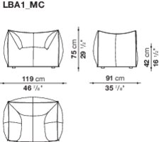 The Bambola armchair is part of Le Bambole series, originally designed in 1972, awarded with the Compasso d’Oro in 1979. Icon of timeless contemporaneity and one of the most effective expressions of Made in Italy excellence combining research and creative flair, Le Bambole have provided a very personal answer to the theme of seats. What makes them special is the apparent absence of a load bearing structure, the extreme naturalness of the shape, and the combination of comfort, softness and elasticity that their appearance conveys. Where the original construction was based on a metal structure embedded in polyurethane, now the materials used are of the latest generation, starting from recycled polyethylene gives structure. A sustainable project thanks to the choice of materials and the construction method, that allows the components of Le Bambole to be completely disassembled and therefore easily recyclable.