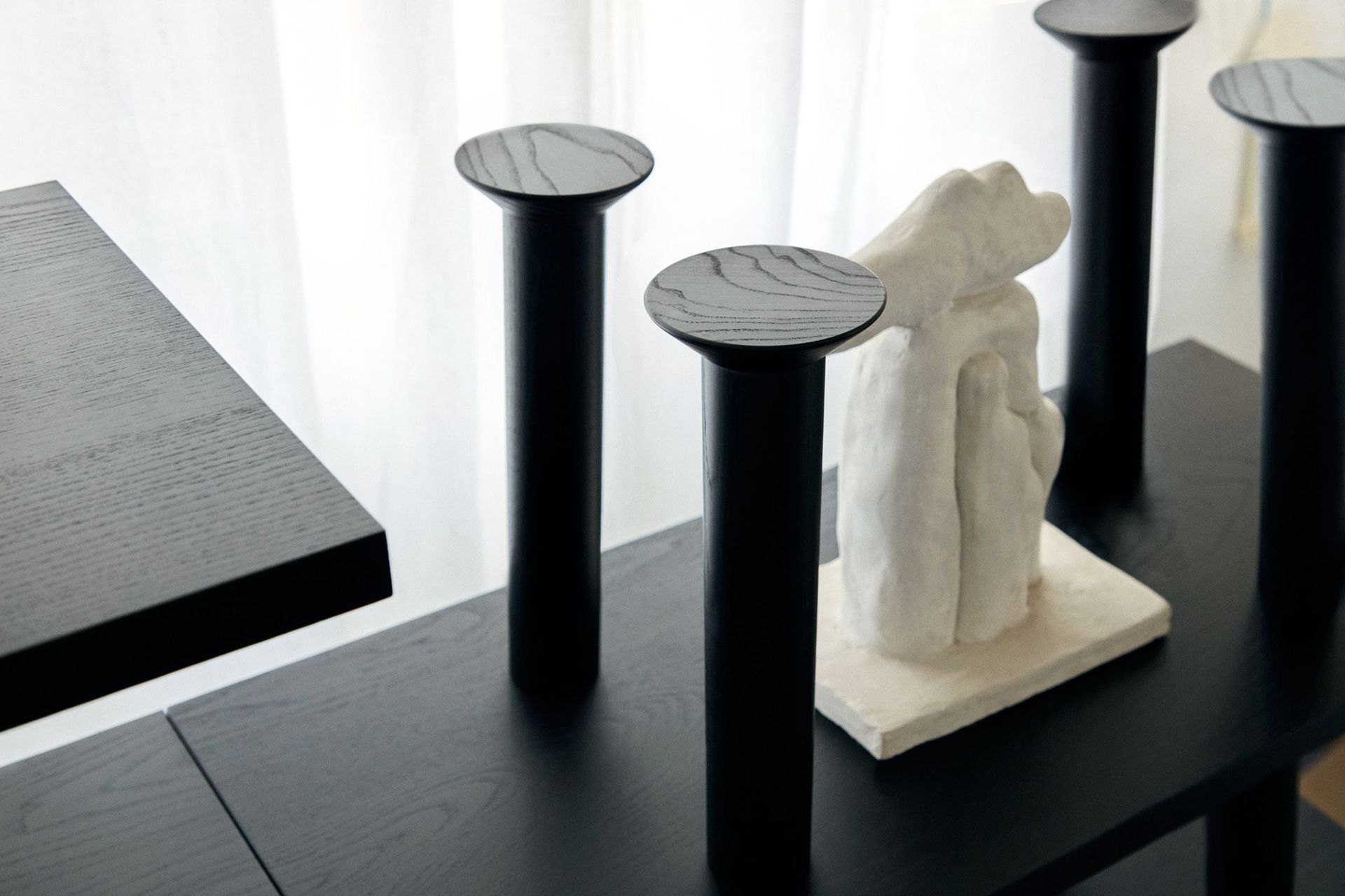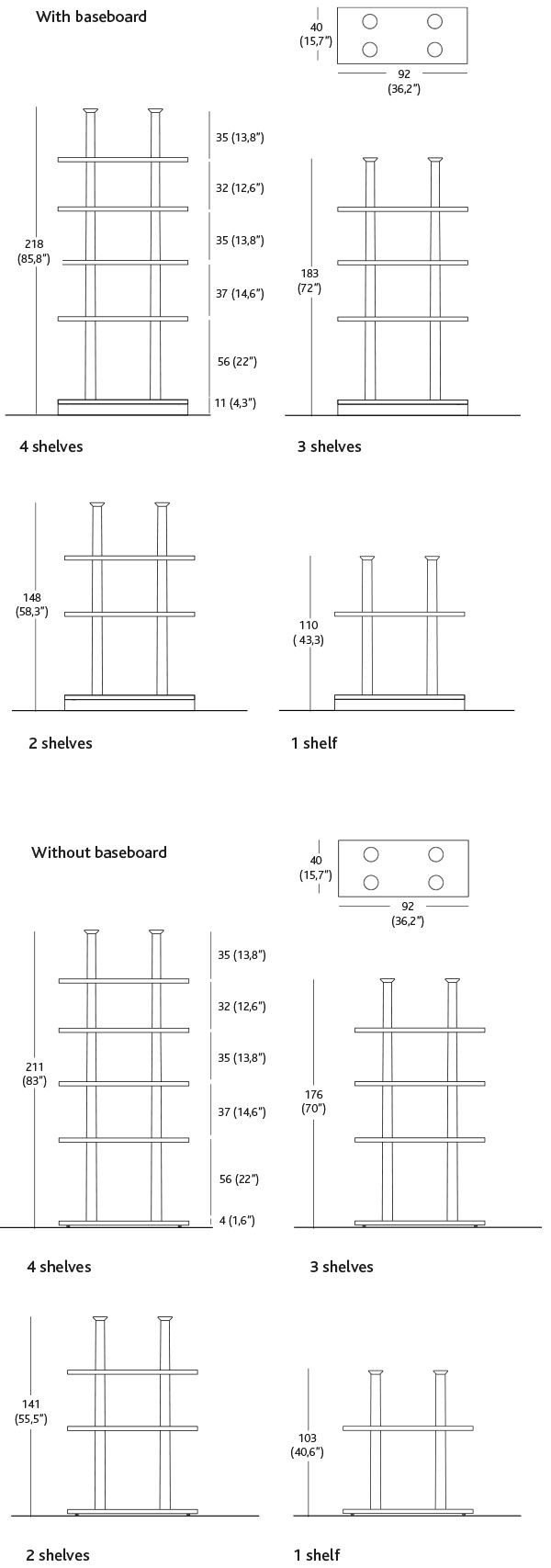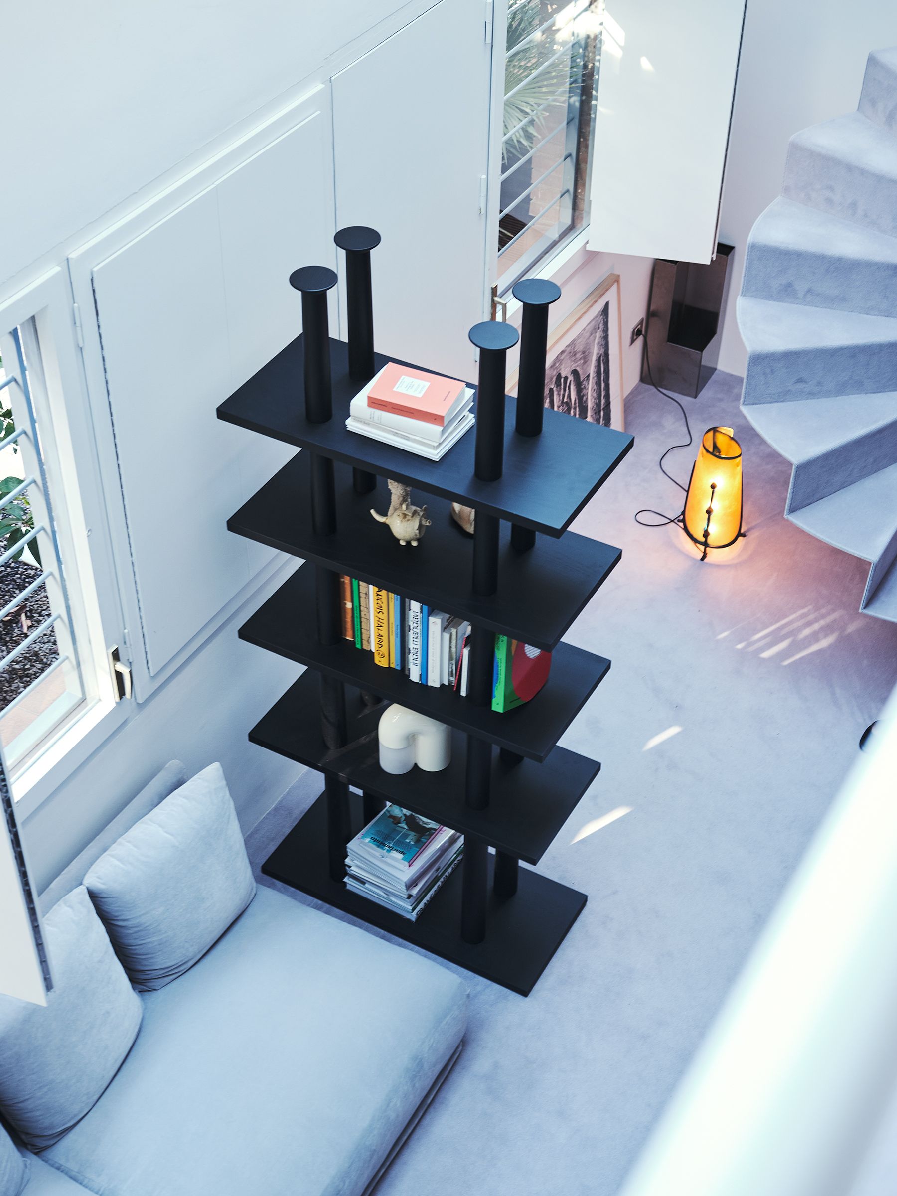 A simple shelving system ideal for book-lovers and anyone who enjoys such compositional and symbolic harmony. With an awareness of functionality and a passion for architectural history, Tusquets created a structure both efficient and sculptural. 'Peristylo' derives from the Greek Peristyle, a structure surrounded by columns. These columns also appear recurrently in Tusquets’ paintings and encase own home. The Peristylo is imbedded both in the far away past and in the designer' personal history. And they return again in the Peristylo, encasing the horizontal planks and running upwards into Doric capitals. Available in four sizes, the shelf is modular and can be free-standing, wall-hung, or organised in various combinations.