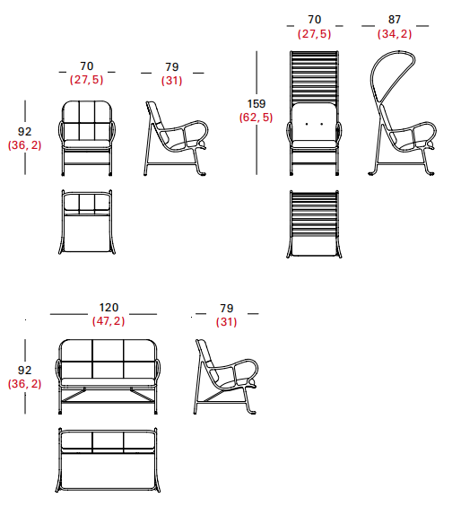 Estructura fabricada en fundición y lamas en extrusión de aluminio. Pintada con Alesta Anodic Black. Asiento y