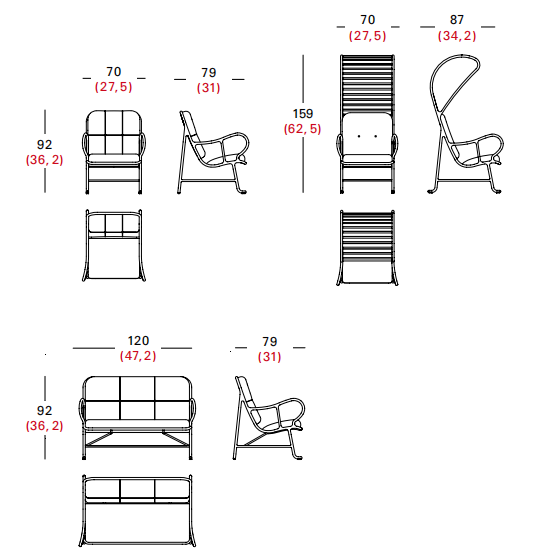 Estructura fabricada en fundición y lamas en extrusión de aluminio. Pintada con Alesta Anodic Black. Asiento