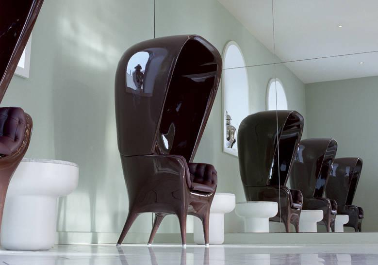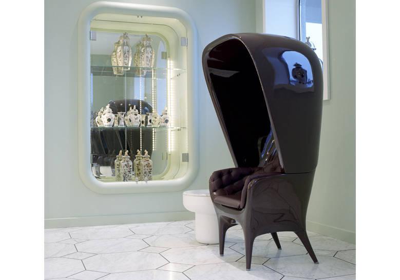 que se requiere en el contract. Una colección donde conviven los plásticos con la tapicería de capitoné, los brillos
