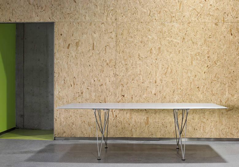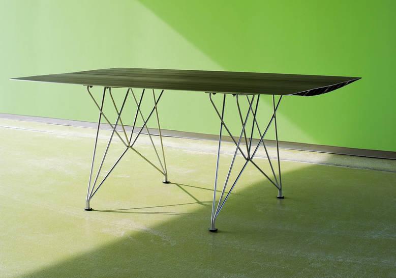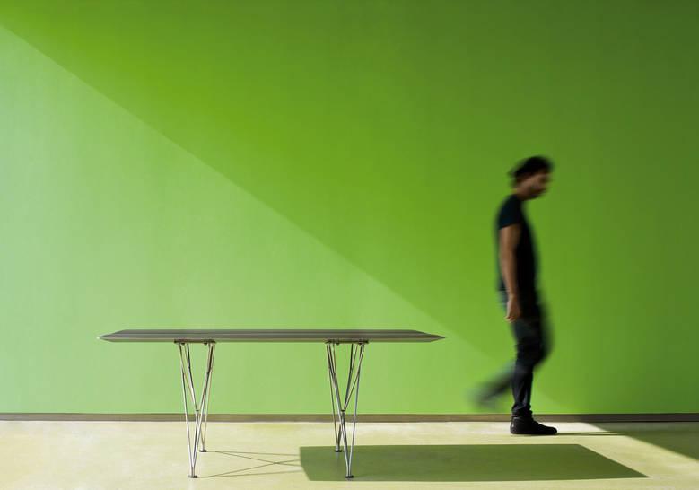 La Table B se ha convertido ya en un clásico del dise?o del siglo XXI, con medidas que van de los 1,80 metros a los 5 metros. La versión de exterior puede ir en pie de hormigón arquitectónico o en varilla de acero inoxidable.