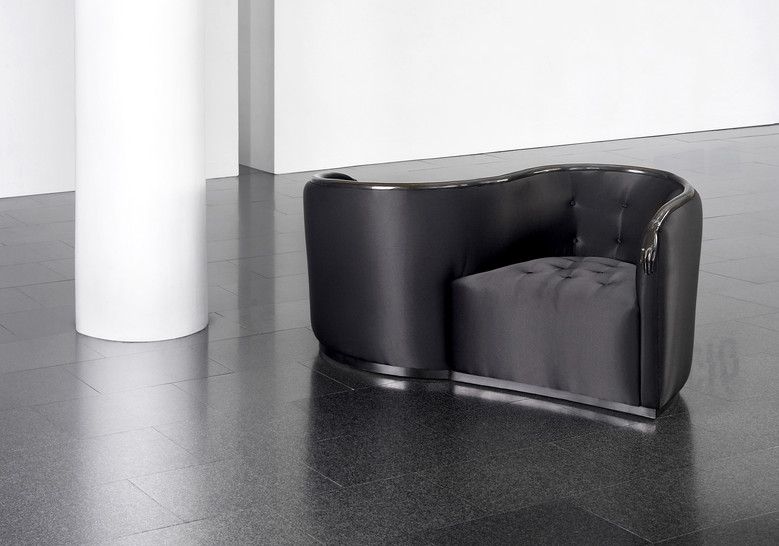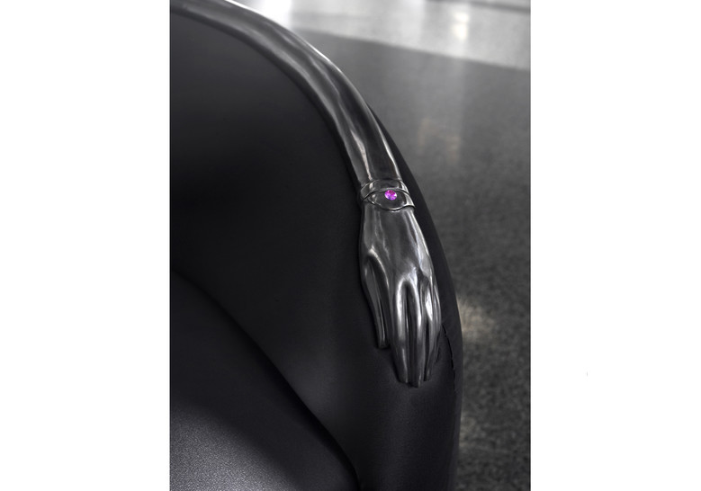 Remate superior del respaldo en fundición de latón pulido y pátina negra sin barnizar.