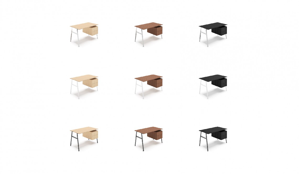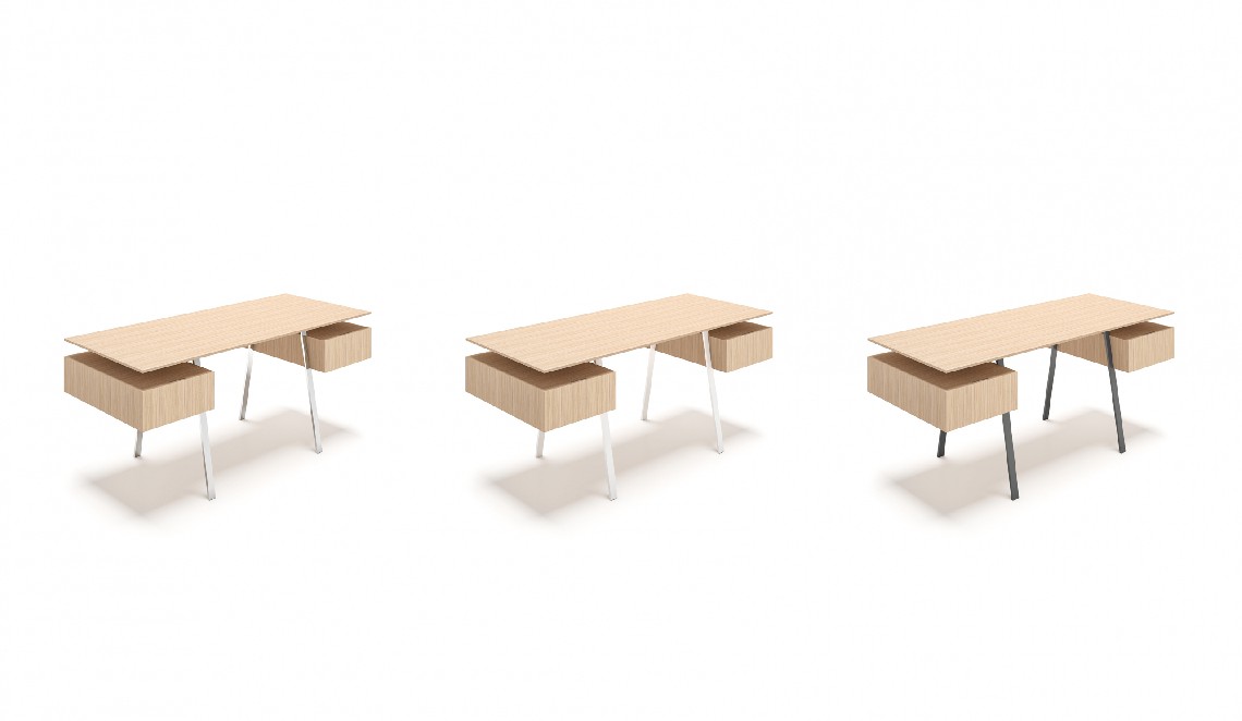 Highly versatile and customizable, the Homework is a deceivingly simple writing desk. Conceived for home offices or other small offices where the desk will be on display, Homework can be adjusted according to your unique needs. The wooden top compliments the wooden drawers and softens the overall effect.