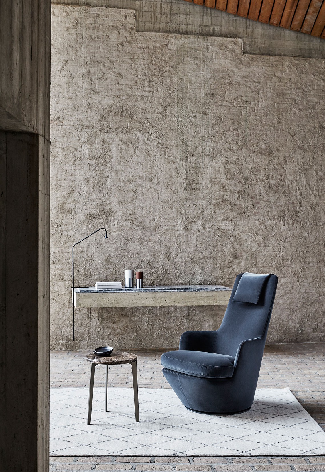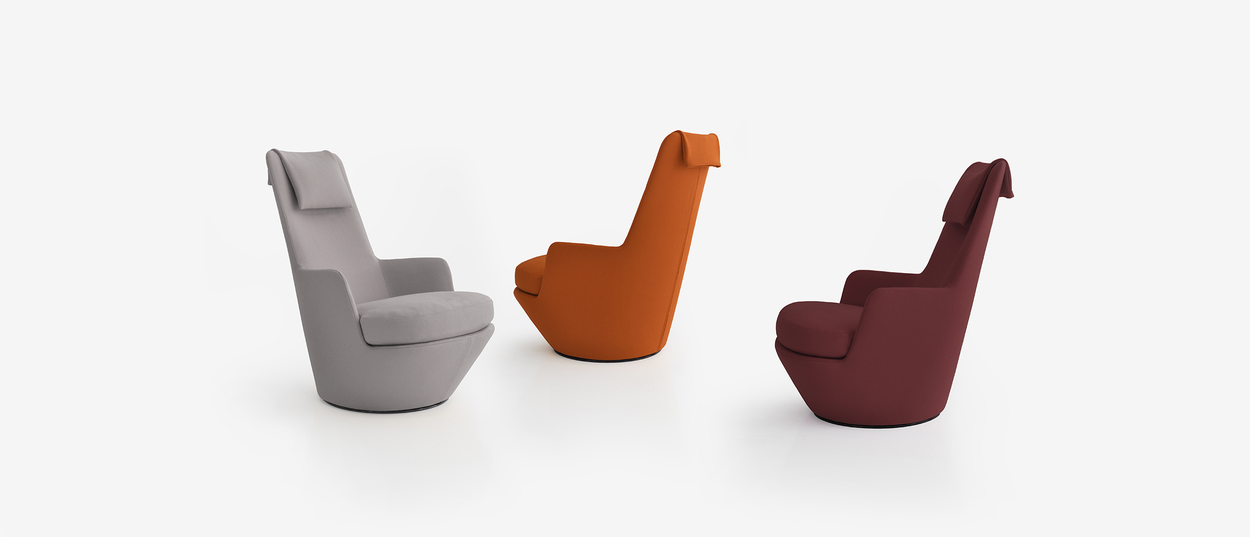 Hi Turn is a high back lounge chair that swivels. Comfortable and tailored, it is a lovely addition to any space.