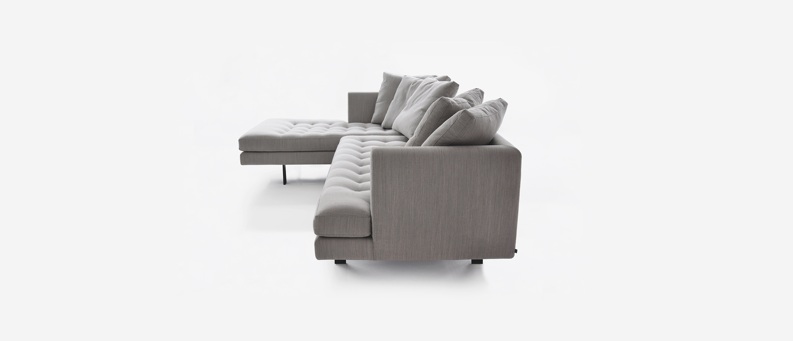 A contemporary take on a mid-century design. Edward uses traditional tufting on the seat combined with contemporary production techniques to produce a refined sofa. Available in a variety of sizes and configurations.