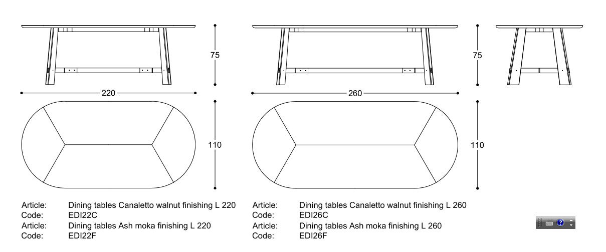Canaletto o Frassino tinto moka. Poggiapiedi in metallo finitura oro opaco.
