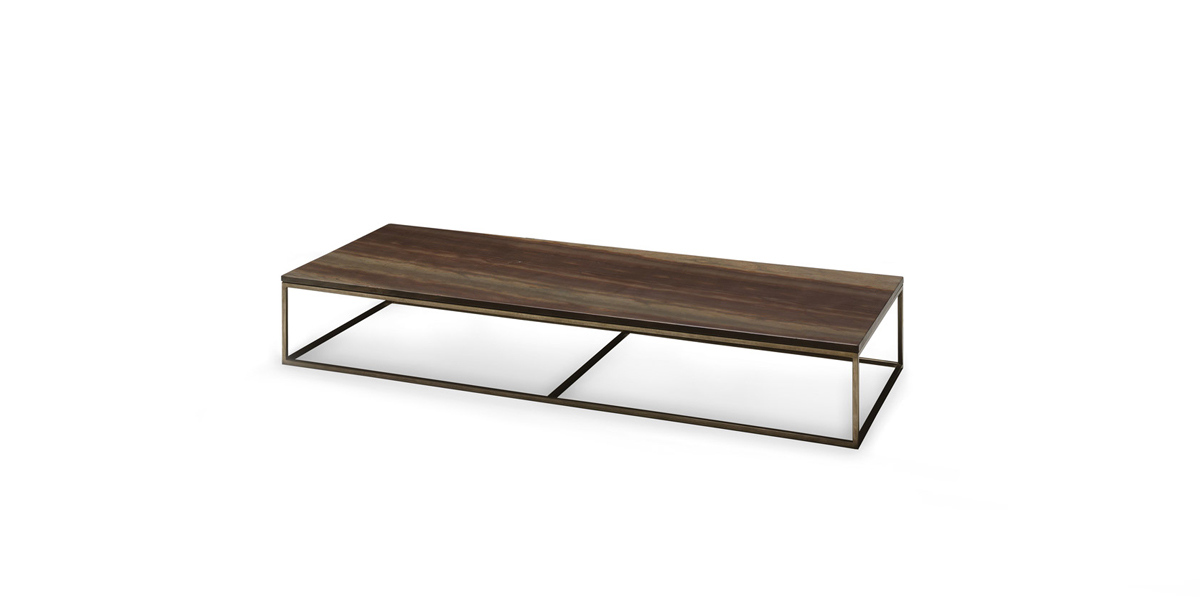 Coffee table with supporting structure in metal matt dark bronze finishing. Top in Elegant Brown stone