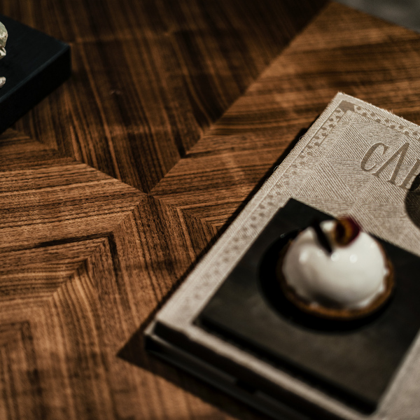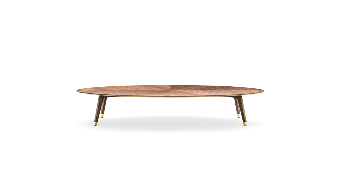 Coffee table with supporting structure in Canaletto walnut solid wood and top in MDF with Canaletto