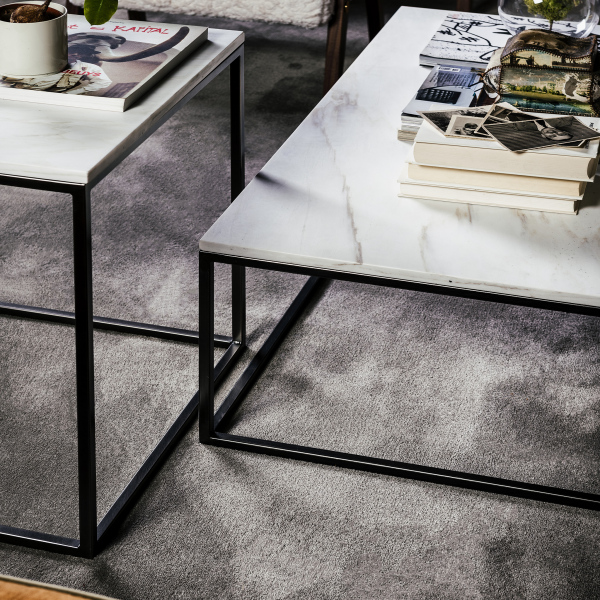 Tavolini con struttura in metallo finitura bronzo scuro opaco . Piano in pietra Elegant Brown, in marmo