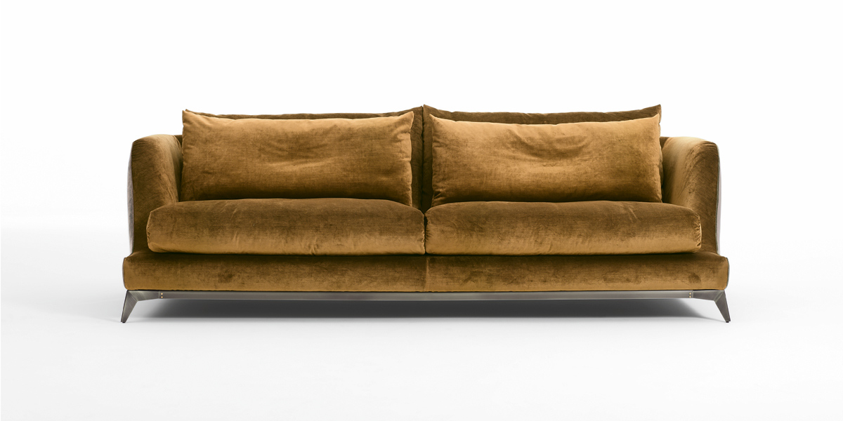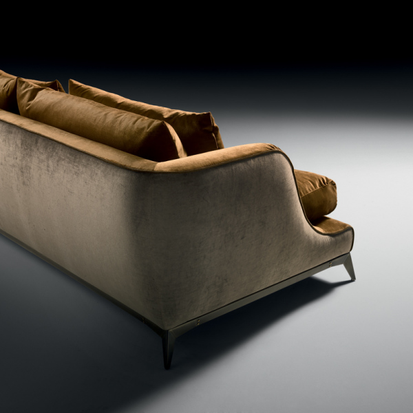 espanso a quote differenziate ad alta densità e memory foam. Cuscini schienale completamente in 100% piuma d’oca,