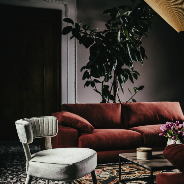 Armchair with structure in beech wood, seat and back in fire-resistant expanded polyurethane. Ash moka lacquered