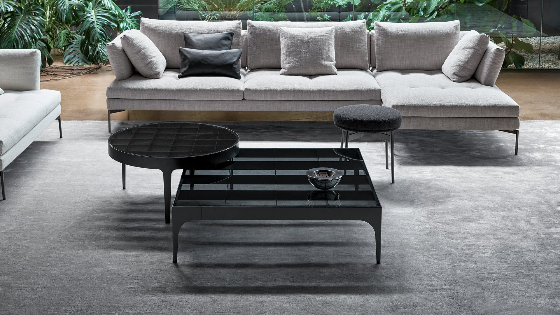 The style of the designer glass coffee tables designed by Fabrice Berrux sums up a discreet elegance that is both structural and functional at the same time while drawing attention to a number of sophisticated details, most noticeably, the metal “chess board” structure that can be glimpsed under the glass top. The designer glass coffee table is available in different formats including square, rectangular and circular, which allow you to create countless furnishing solutions and combinations.