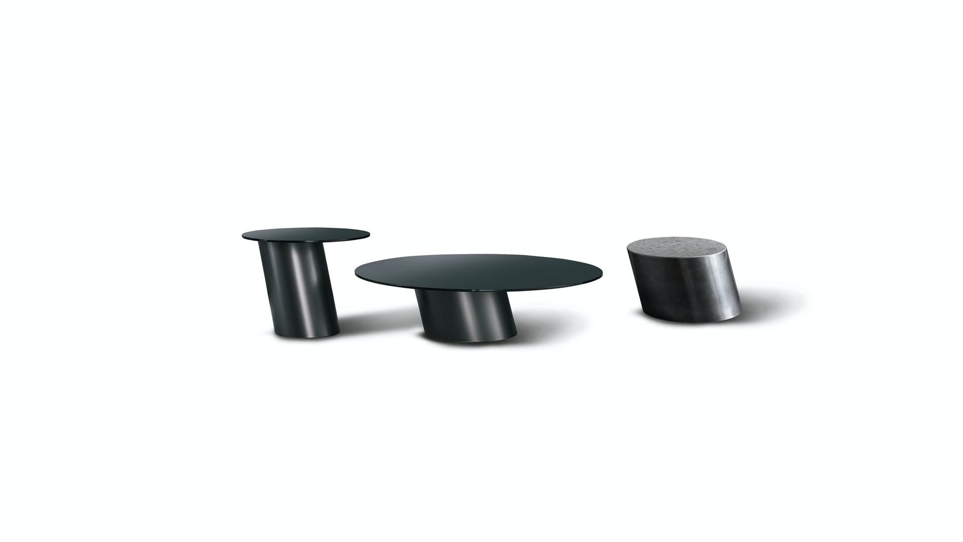 The Pisa coffee tables, designed by Mauro Lipparini, are furnishing accessories with a strong character, thanks to the monolithic design of their bases. Available in the single block version with a recessed or cap-like top, the signature feature is the angle of the base which leans diagonally like the tower after which they are named. Metal, used for the base, is the common thread running through the collection: the minimal decor coffee table assumes its own identity based on the material used for the top, available in ceramic, glass, marble or metal in the same finish as the base.