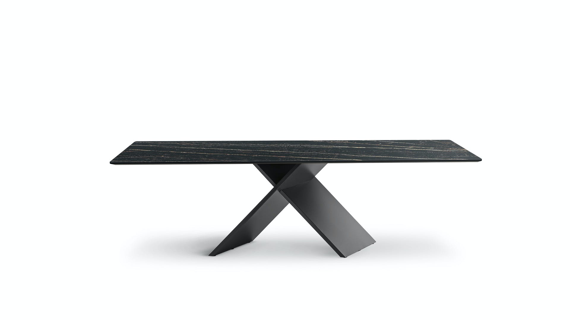 Geometric essentiality and linearity are the choices of a design language for the AX rectangular extendable dining table based on simplicity but also solidity, underlined by the sizeable base. The appeal of the material contrast between the top and the legs makes any decoration almost superfluous, enhancing the purity of the design and Bonaldo’s handcrafted excellence. The juxtaposition of very different materials underlines the contemporary feel of the design: the legs are offered in painted metal of numerous colours or burnished finish; the top, both in the fixed and extendable versions, is available in wood or ceramic. A console with the same name (AX Console) is also available for creating rooms with a coordinated style.