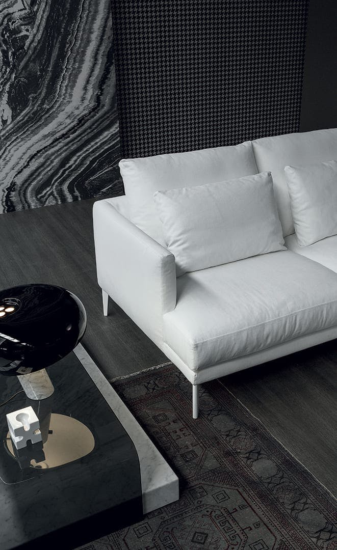 A classic design kind of sofa with a simple, essential and elegant taste, which, thanks to its balanced volumes, adapts to a variety of environments, sizes and styles and makes it possible to use the spaces in the best possible way. The Paraiso classic designer sofa with removable upholstery in fabric or leather, is available in numerous versions: in addition to the linear sofa, it is indeed possible to create solutions with a chaise longue or corners, or combining comfortable poufs, fully satisfying different tastes and needs for comfort. Particular care has also been used in the internal parts of the sofa: the feet can be in painted metal or upholstered in Capri leather.