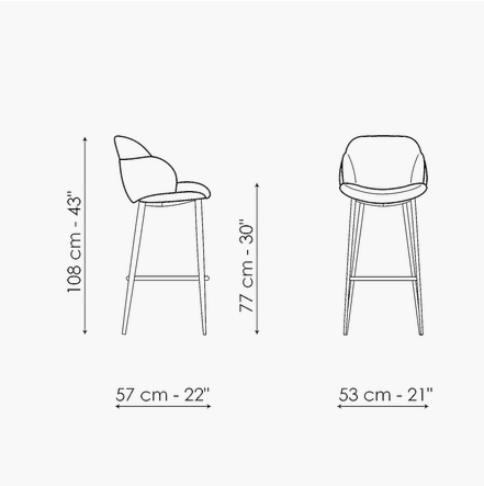 Softness and comfort are the main characteristics of the kitchen stool My way too. An element that catches the attention is the considerable padding of the body that wraps it in a precious shell. The My way too stool is available with fixed or swivel metal base while the seat and back are covered in fabric, eco-leather or leather. The variety of finishes available for the base and for the covering allows ample freedom of customization for a close dialogue with the surrounding environment.