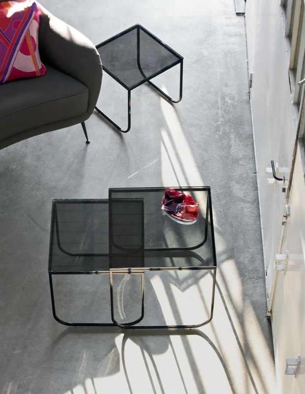 Coffee table with lacquered Metal frame, top in veneer, glossy Glass, velvet matt Anti-scratch Glass, SuperCeramic or SuperMarble.