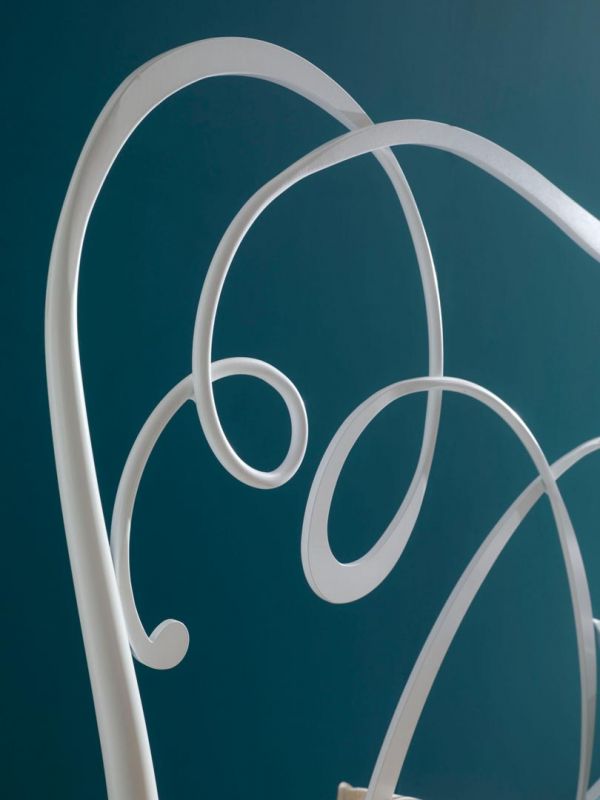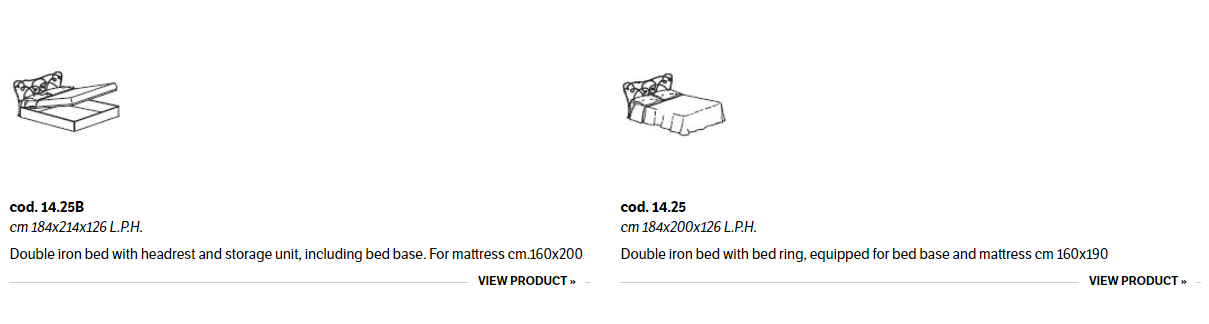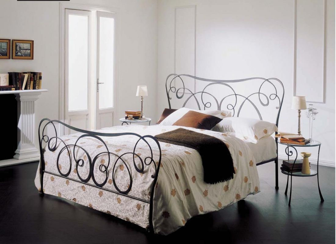 Iron bed in lacquered or hand-coated metal frame, in double version, with footboard, bed ring or storage unit.