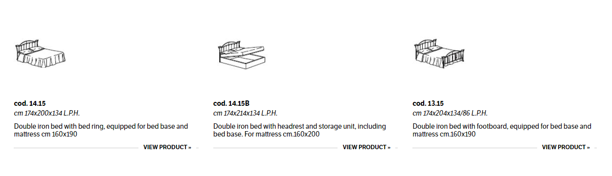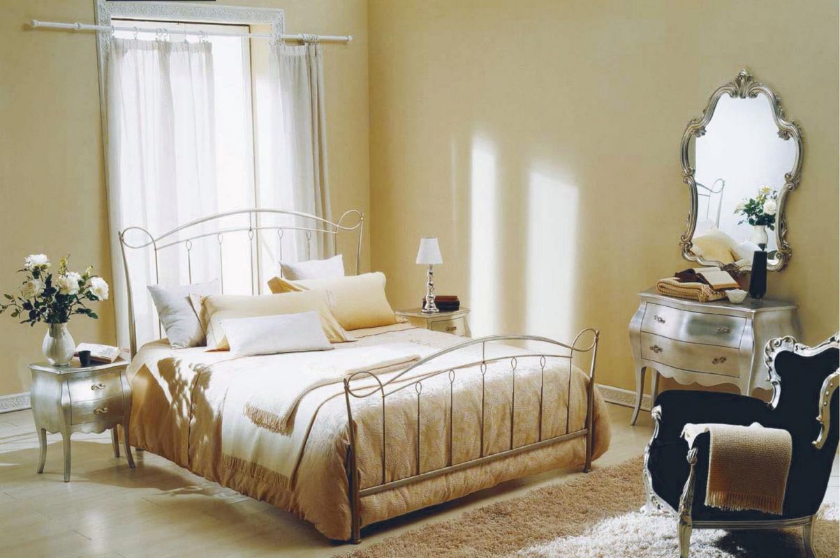 Iron bed in lacquered or hand-coated metal frame, in double version, with footboard, bed ring or storage unit.