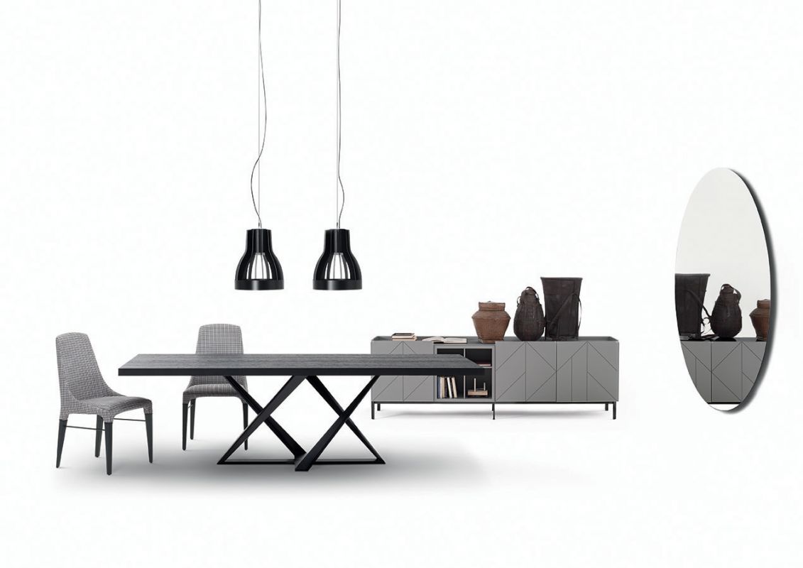 Ceiling light with black ceiling rose and lacquered structure.