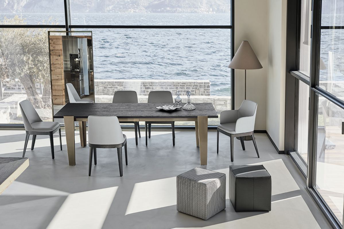 Program of ceiling lamps and floor lamps with metal lacquered frame and fabric lampshade.