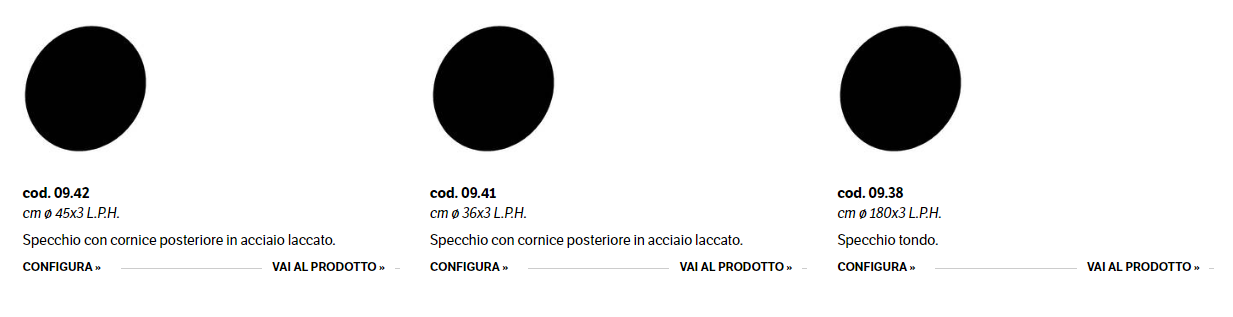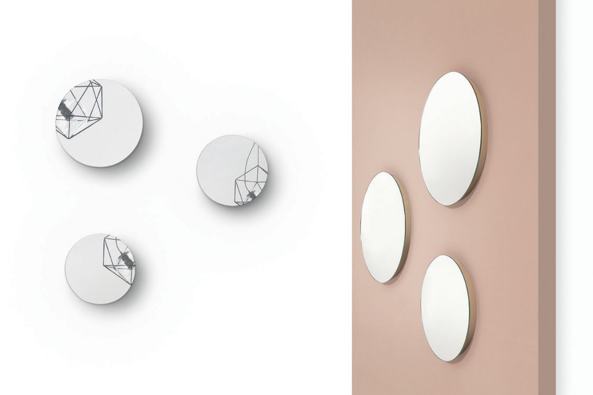 Serie di specchi tondi di diverso diametro.