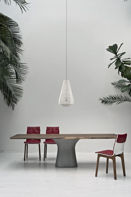 Chair with solid Wood or Metal frame. Shell in lacquered Wood with or without cushion quilted and upholstered.