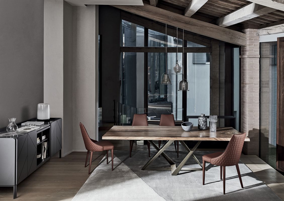 Chair padded and totally upholstered or with the legs in lacquered Metal frame. Piping can be in matching colour or contrast colour. Also available in the version with quilted backrest (only for Waterproof Nabuk, Eco leather and Premium nappa leather).