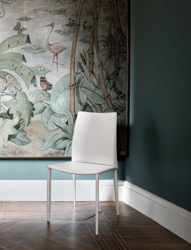 Chair and armchair with metal frame, completely padded and upholstered.