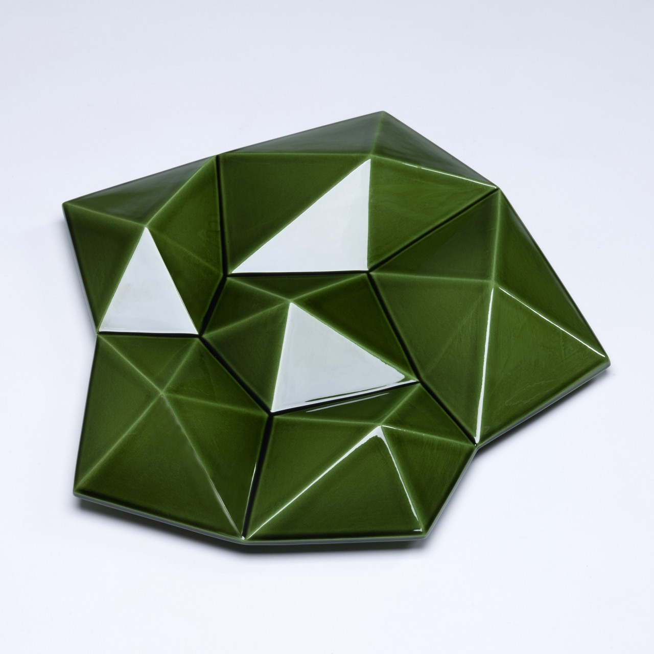 Bamakò una sequenza di piccole piramidi irregolari accoglie la frutta creando uno strano paesaggio. Accostando più pezzi di diversi colori si forma un intrigante effetto pachwork da lasciare sul tavolo o da appendere al muro, realizzando una colorata installazione.
