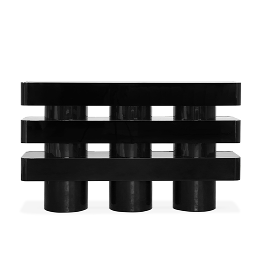 Shinto shrines are places of reverence and the abodes of the 'kami' - gods- where sacred objects are stored in the innermost chamber of the altar, not seen by anybody. SHINTO II Console was designed with a gloss black lacquered structure and ash wood veneer white tabletop, safekeeping everything you set on it. This entryway console table with drawers fits any modern classic set, adding a touch of style and refinement.