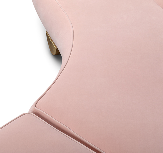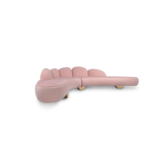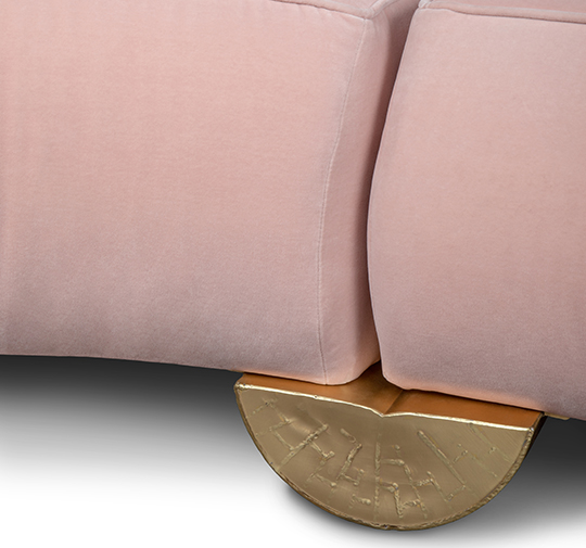 FITZROY Sofa is inspired in Mount Fitz Roy, a mountain in Patagonia, whose name is a tribute to Robert FitzRoy, the captain of the ship that transported Charles Darwin in his travel around the world. This curved sofa, with its back inspired in the outstanding mountain shape, is fully upholstered in cotton velvet and the base is in matte casted brass. FITZROY Modern Corner Sofa will add an organic element to any living room set.