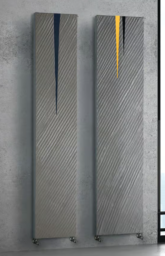Virgo, with its surface graved by nearly signed furrows, creates a minimal decoration inspired by nature. Splits crack like cuts the surface producing discontinuities and revealing the inner core of the radiator.