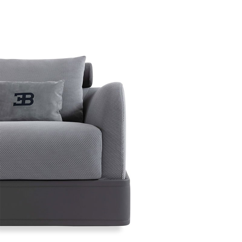 The band of fabrico or leather running along the fascia embraces the extremely high performance padding. A comfortable, spacious sofa embellished by the coffee table featuring Olympic Striato marble top. The back cushions sport a headrest roll pillow to afford even greater comfort and EB printed logo.