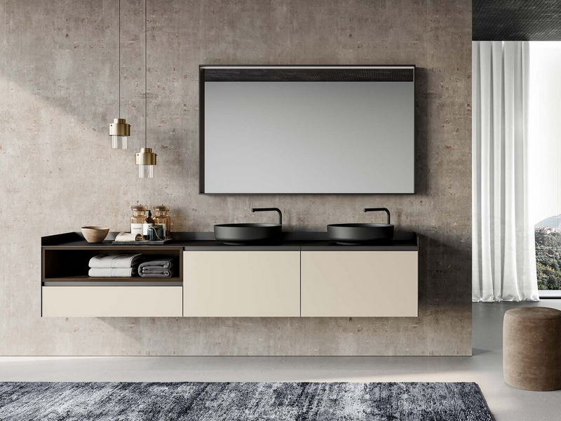 A bathroom furniture range with an essential shapes and clean lines groove opening, in which the research of continuity is realised in the total or partial groove. This creates a distinctive element, which transforms the functionality of the aperture into a decoration for the entire collection.