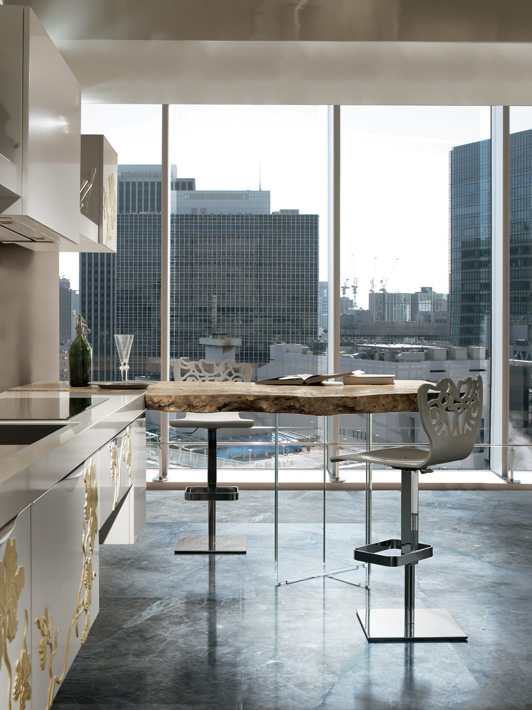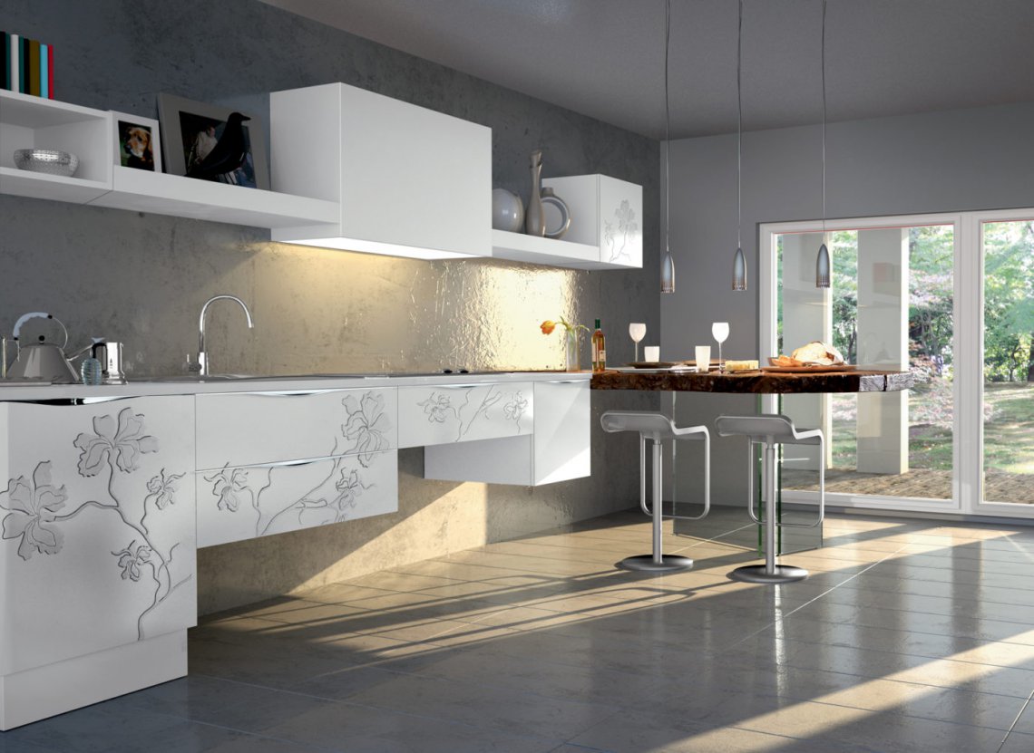 Un decoro raffinato e artistico proposto in versione “Ton sur ton” per un effetto elegante e sobrio, in versione in foglia oro e argento per un contrasto più deciso.