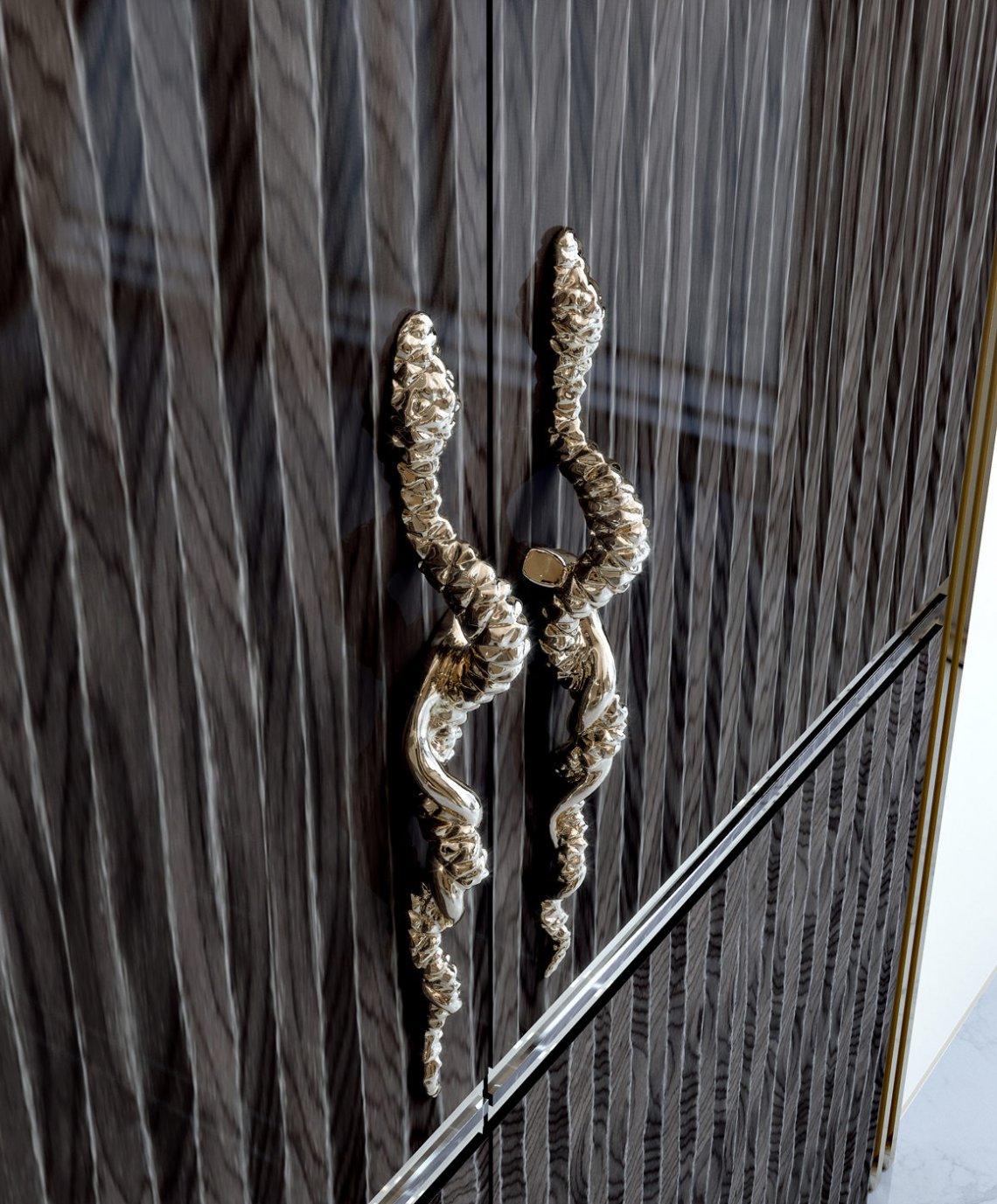 Trionfo dell’eleganza e del lusso discreto, Infinity è la collezione che spicca per la purezza formale di arredi pensati partendo da linee regolari e geometrie sobrie. Essenze in legno Thai-wood richiamano la raffinatezza di un tessuto gessato, in contrasto armonico con le delicate nuances dei toni madreperla.