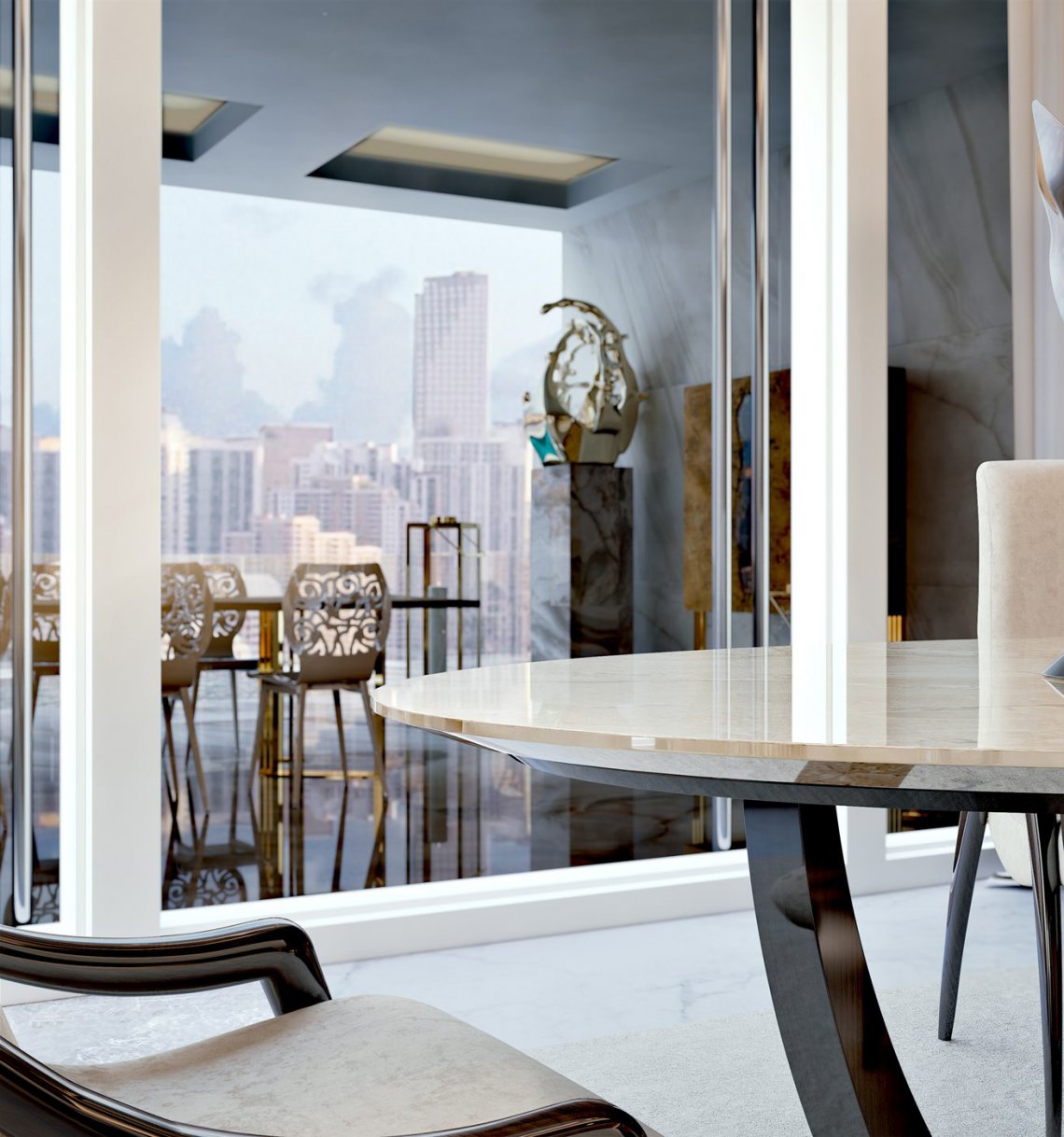 Soluzioni d’arredo raffinate e prestigiose per l’utilizzo di materie prime eccellenti come il legno Erable proposto nelle sfumature dei toni madreperla per una sensazione di perfetto equilibrio estetico.