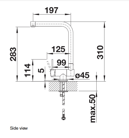 User-friendly fold-down mechanism so the mixer tap folds down to one side