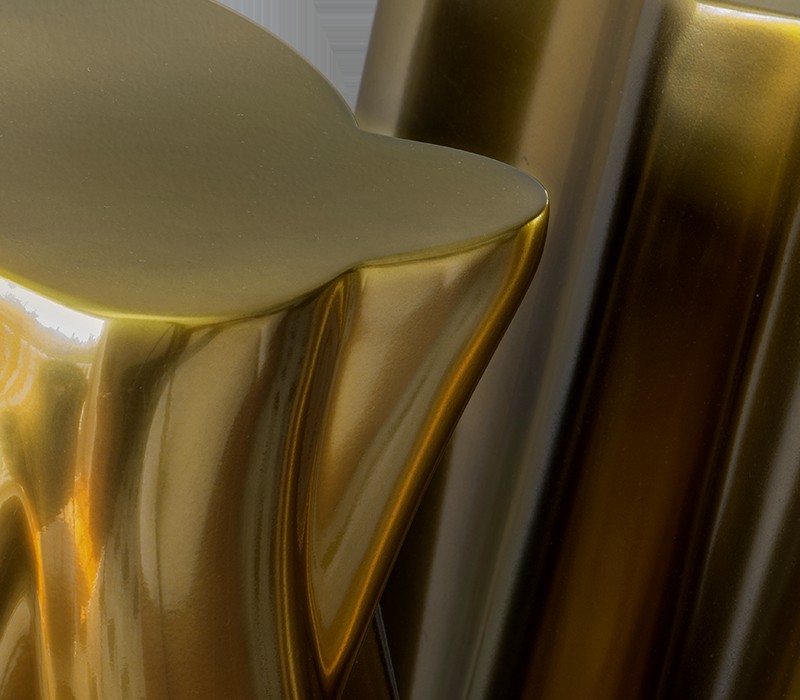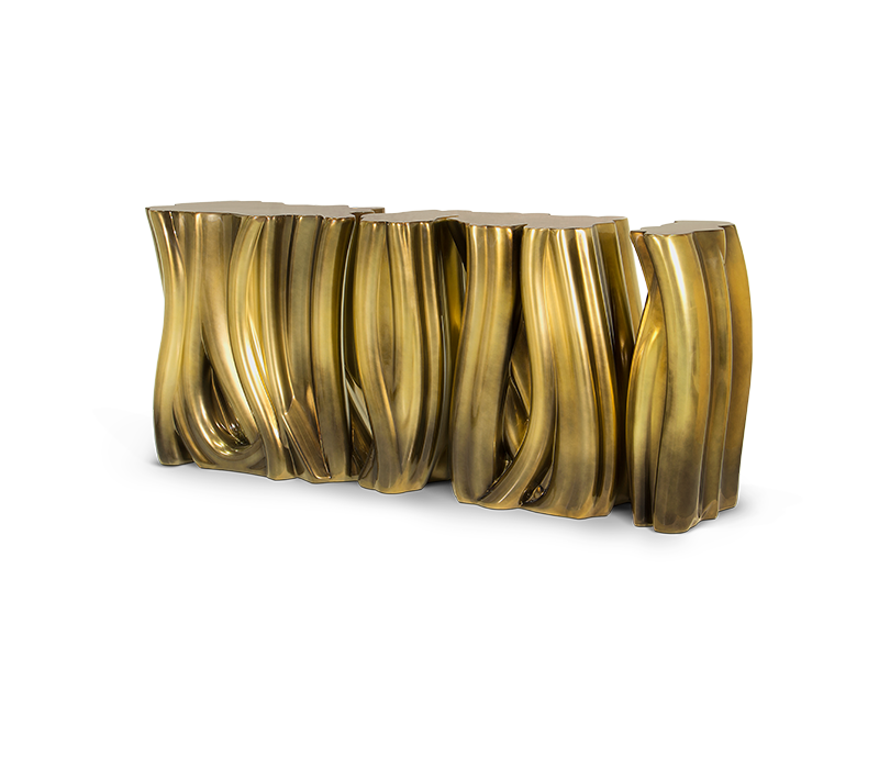 A demonstration of both imagination and strong design skills, the Monochrome console is a remarkable piece that stands out in any room or setting. Perfect for living spaces grounded in contemporary style as they embrace careful craftsmanship, this console expresses a leading edge outlook through its daring curvy shapes and gold tones.