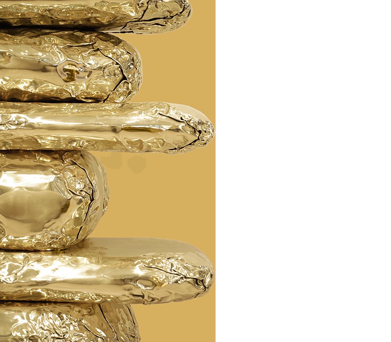 Finding inspiration in the prehistoric monument Stonehenge, positioned asymmetrically and composed by a striking finishes and materials –Brass and Marble. This piece promises to elevate your living space to the next level. The metallic hues make an elegant contrast while beautifully combine and pay tribute to the Neolithic and Bronze Age.