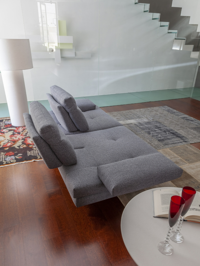 Molto più di un divano. Le spalliere e i braccioli traslanti consentono un notevole ampliamento della seduta fino a rendere Toby Wing un vero e proprio day-bed. Come vere e proprie ali, le spalliere e i braccioli del Toby Wing sono pronti a schiudersi per regalare unici momenti di comfort. La spalliera consente di estendere la profondità di seduta di ben 42 centimetri, mentre il bracciolo incrementa la larghezza di seduta di ben 25 centimetri. Il Toby Wing diviene un luogo altro, un’isola su cui riposare, sognare, concedersi una pausa in assoluto relax. Per arricchire ulteriormente la personalizzazione del modello
