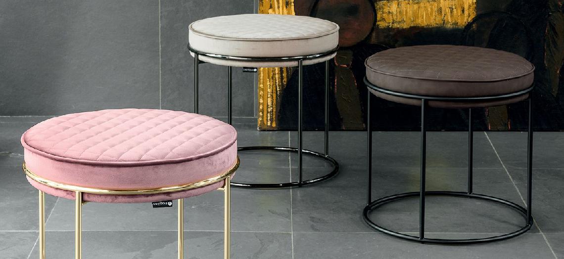 -Upholstered metal pouffe 坐墊