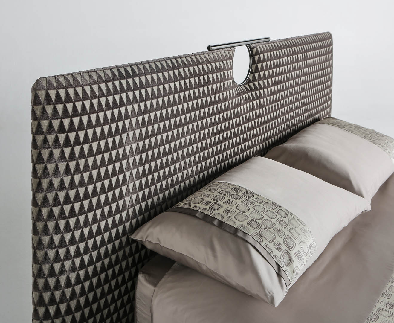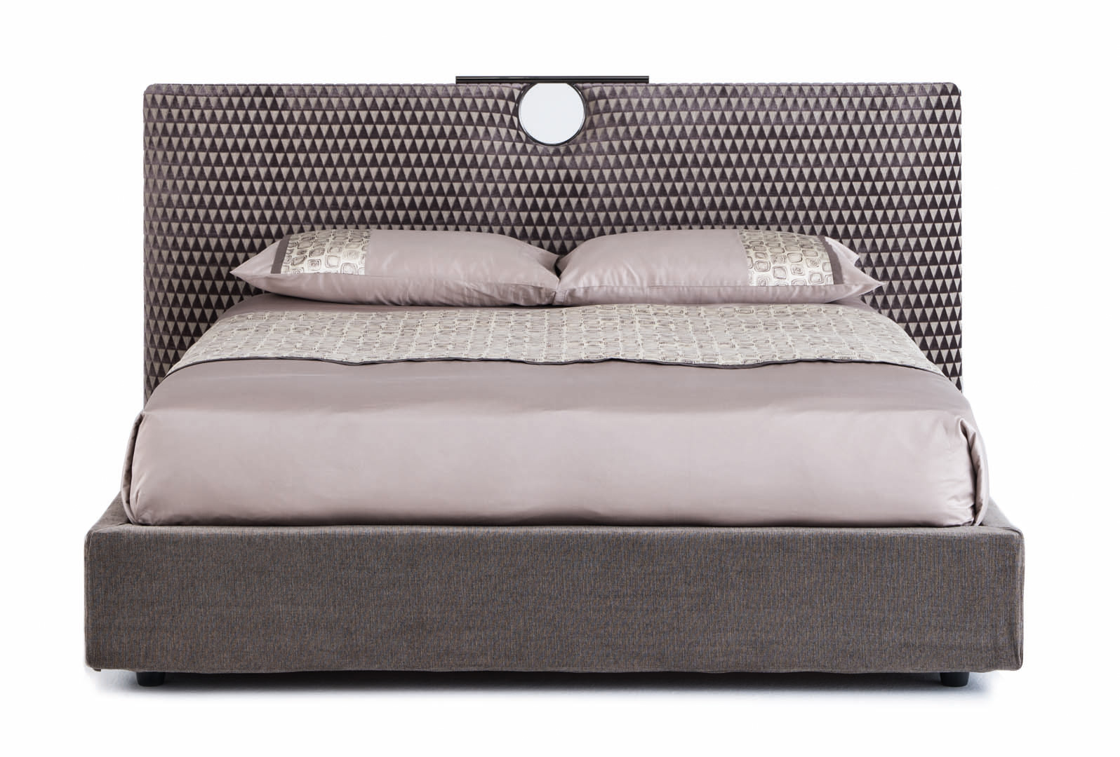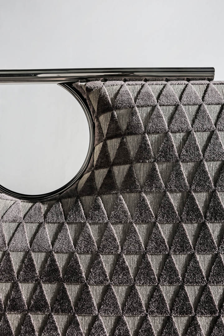 Il dettaglio in metallo spezza la semplicità del letto imbottito rendendolo più elegante; la testata e il giroletto sono imbottiti e rivestiti, o impunturati se in pelle, anche in tessuto/pelle fornito dal cliente (il giroletto è sfoderabile). Il letto Bay, con la linearità del design, dona un carattere unico alla camera da letto moderna; è disponibile in varie dimensioni per reti da cm: 160x200 (letto matrimoniale), 180x200 (letto matrimoniale) e 200x200 (letto king size) anche nella versione con box contenitore.