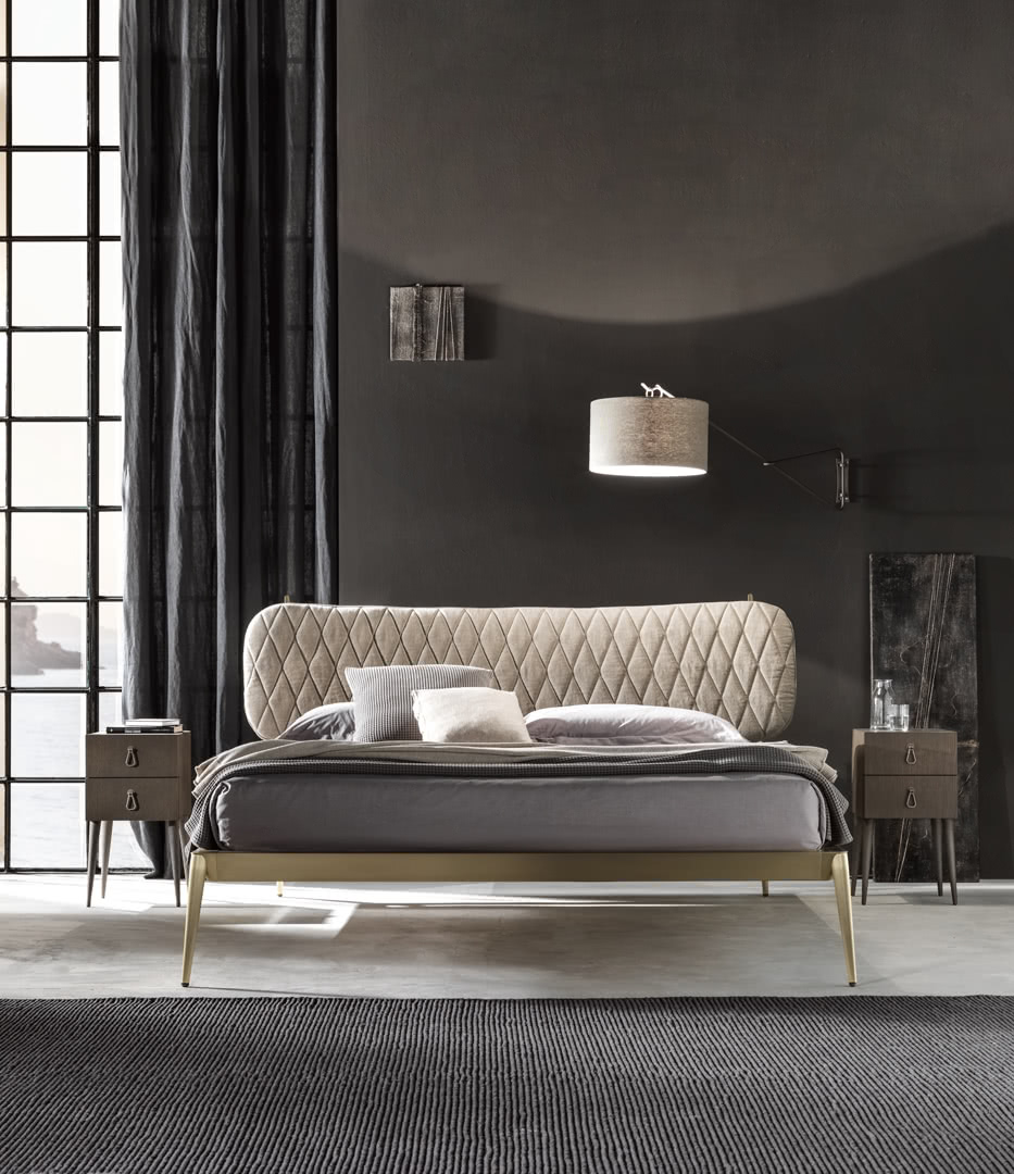 Letto matrimoniale moderno Urbino trapuntato in metallo con testata imbottita.
