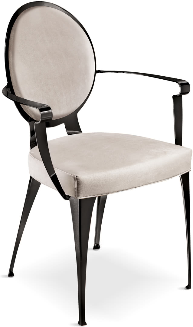 Sedia/poltroncina moderna imbottita Miss con braccioli e struttura in ferro.