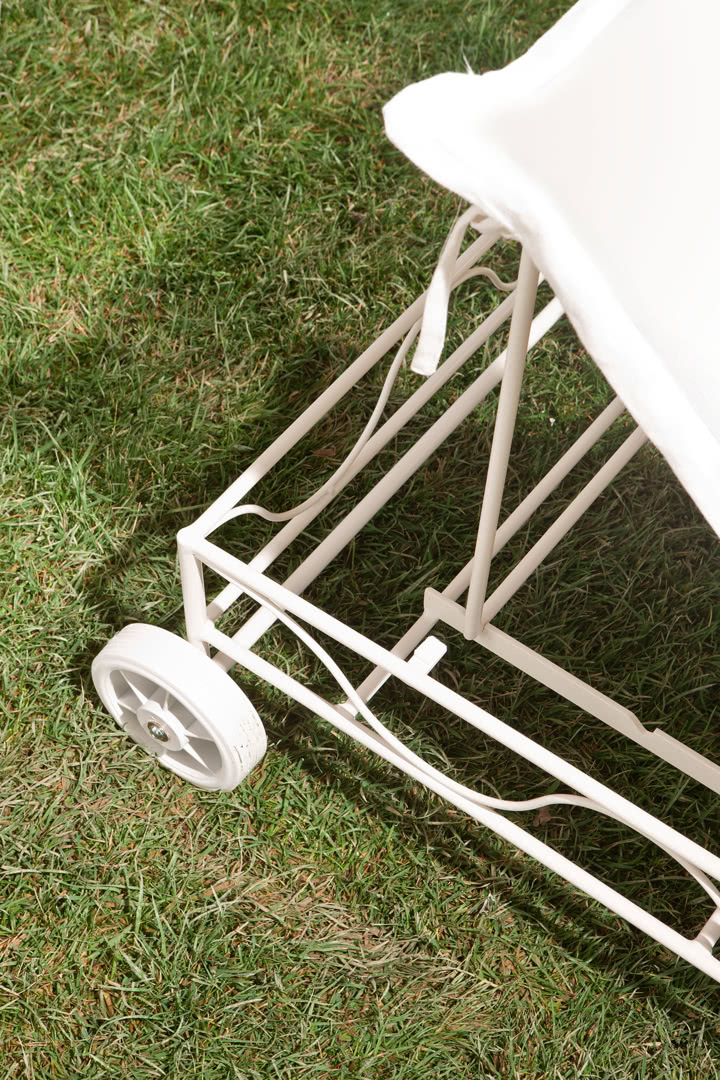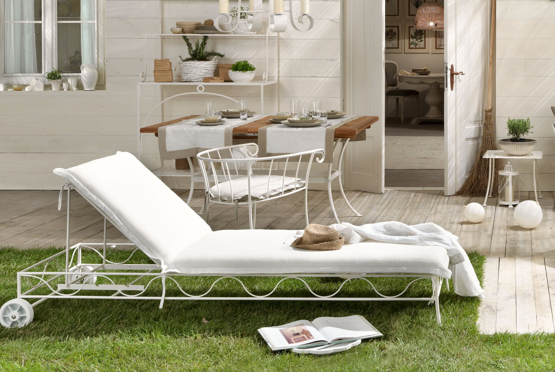 La struttura è in ferro antracite curvato, rastremato e battuto a caldo, con saldature a filo e levigatura realizzata a mano. I cuscini della seduta e dello schienale, reclinabile in diverse angolazioni, sono in tessuto e completamente sfoderabili. Il lettino è dotato di 2 ruote per facilitare lo spostamento. Perfetto per creare zone living confortevoli anche in veranda o a bordo piscina come divano da esterno, dato il design versatile e il trattamento di tropicalizzazione del metallo.