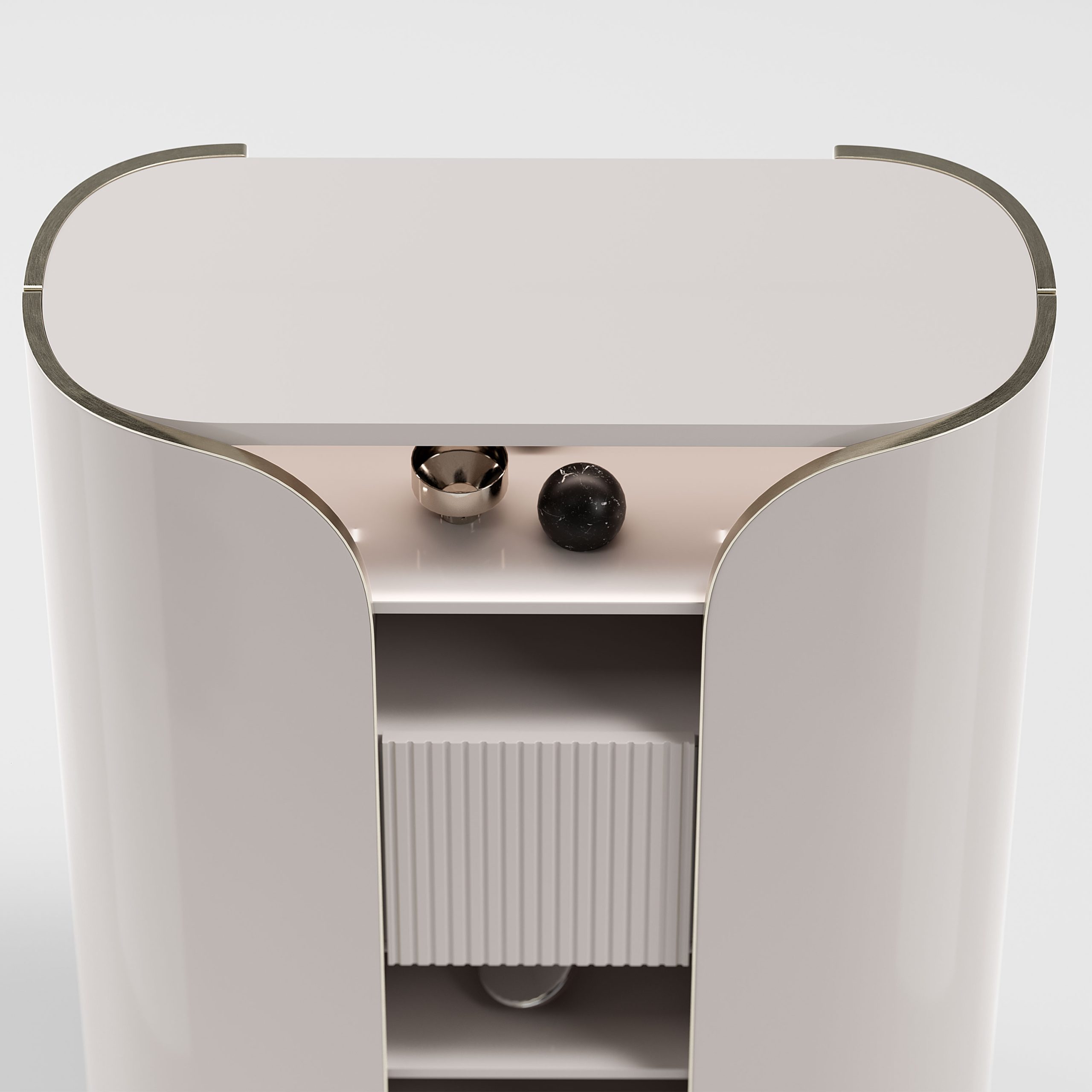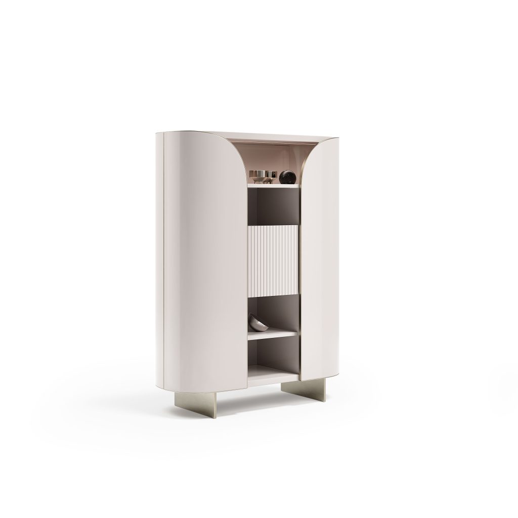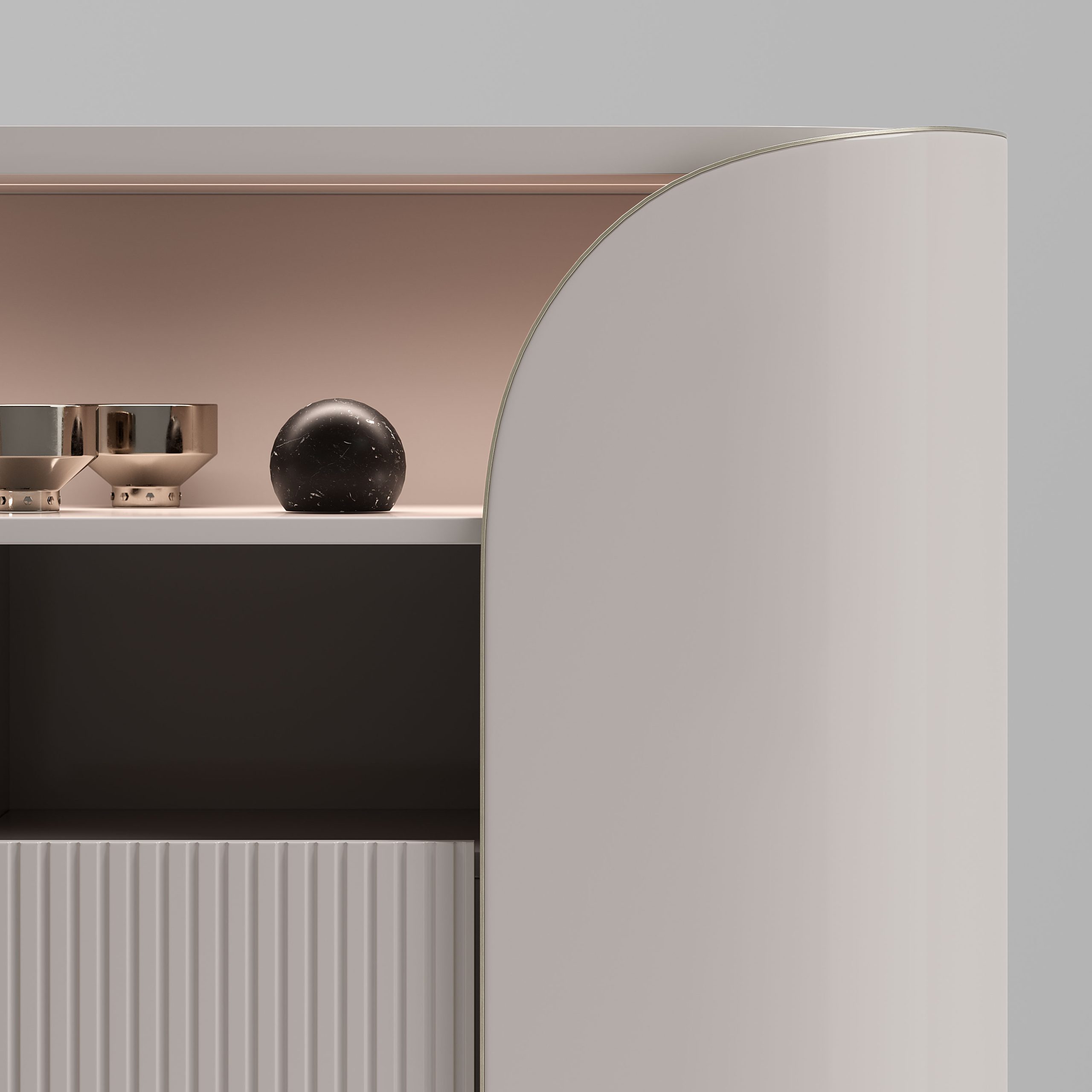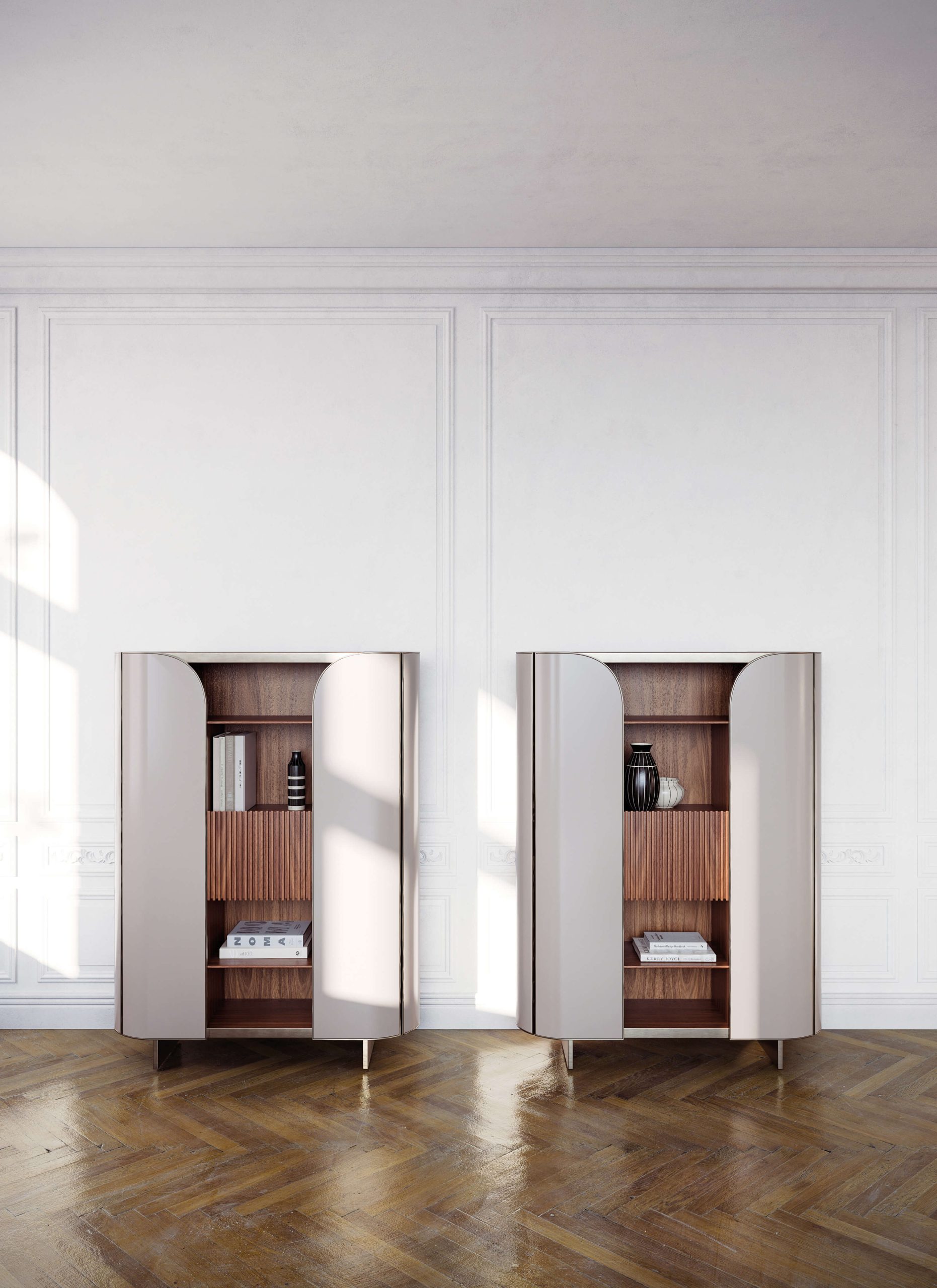 La Collezione Duna incarna l’essenza senza tempo e l’eleganza selvaggia delle maestose dune del deserto. Ispirata alla natura, con le sue forme fluide e la sua grandiosità silenziosa, questa collezione di mobili di lusso trasporta l’atmosfera mozzafiato e la sensazione di libertà trovate nel vasto deserto. Struttura in essenza o laccato. Nr. 2 ante e fianchi disponibili in essenza, laccato o pelle liscia, ripiani interni in vetro bronzato. Parte a giorno composta da Nr. 2 ripiani in essenza o laccato. Nr. 1 contenitore chiuso da 2 ante in essenza o lacatto cannette.